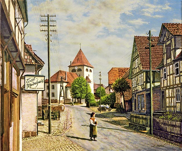 Relevante Suchbegriffe zur Gemäldeausstellung Bad Emstal – Sand: Kasseler Strasse, Thermalbad, Therme, Hessen, Nordhessen, Landleben, ländlich, gemalte Bilder, Ölbild, Ölbilder, Ansicht, Dorfansicht, Dorfleben, Leben auf dem Lande, Landleben früher, Dorfidylle, Dorfidille, Gemälde