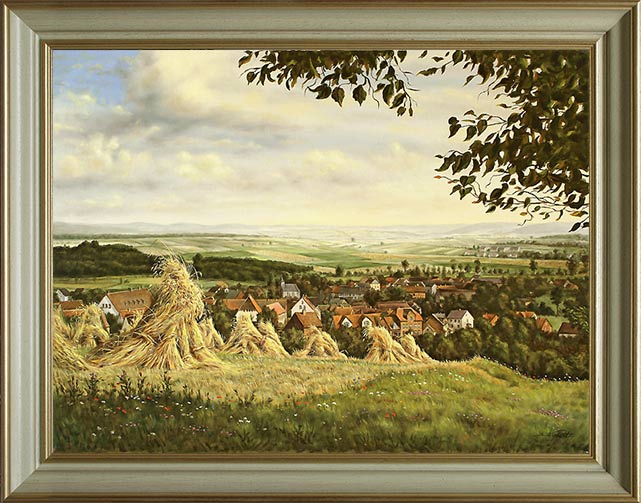 Relevante Suchwörter zum Baunataler Gemälde: Baunatal, Baunataler, VW, VW-Werk, Volkswagen, Volkswagenwerk, Altenbauna, Meierküppel, Hessen, Nordhessen, Ölgemälde, Ölbild, Ölbilder, Ansicht, Ansichten, Alte, Bilder, Bild, Erntezeit, Getreidehocken, Getreidegarben.